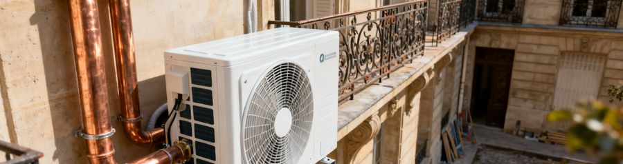 Dans les cours intérieures des immeubles haussmanniens, la réverbération acoustique amplifie le bruit. Le positionnement de l’unité extérieure doit être étudié avec soin par un installateur expérimenté.
